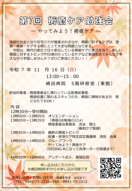 嶋田病院 褥瘡委員会より褥瘡セミナーを開催させて頂きます。